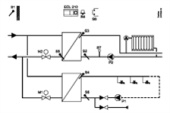 Каскадное управление 4 горелками в автономных системах теплоснабжения зданий. С возможностью расширения до 8. Регулирование теплоносителя в двух контурах отопления и системе ГВС с баком-накопителем.
