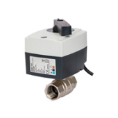 Клапан шаровой двухпозиционный AMZ112 c внутренней резьбой; Ру = 16 бар, Тмакс. = 130 °С; материал – латунь никелированная, время закрытия 30 с/90°, в комплекте с электроприводом, U = 220 В