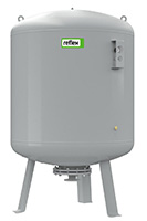 "Расширительный мембранный бак серии G производства Reflex (Германия) имеет металлический корпус, разделенный резиновой мембраной на две камеры: водяную и воздушную. В воздушной камере находится предварительно закаченный под определенным давлением воздух. При нагреве системы расширяющаяся вода попадает в водяную камеру, а по мере охлаждения выдавливается обратно в систему. Поступление и выход из расширительного мембранного бака воды осуществляется через резьбовой присоединительный патрубок.