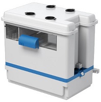 Небольшой насос SANICONDENS Best SFA для отведения кислотных стоков от конденсационных котлов, кондиционеров и холодильных витрин, с возможностью подключения световой или звуковой сигнализации.