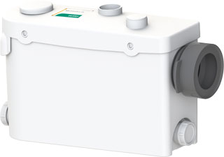 Автоматическая малогабаритная напорная установка для водоотведения с режущим механизмом, встроенным обратным клапаном, фильтром с активированным углем, эластичным напорным патрубком, с возможностью подсоединения одного унитаза, а также – в зависимости от модели – двух или трех дополнительных источников сточных вод. Вентиляция осуществляется через встроенный фильтр с активированным углем; очищенный воздух без запаха поступает в помещение установки.